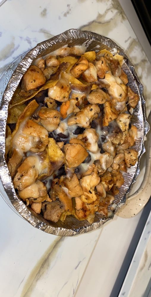 Corn chips topped with cheese, guacamole, chopped cilantro tomato, onions, jalapenos, cotija cheese and sour cream.