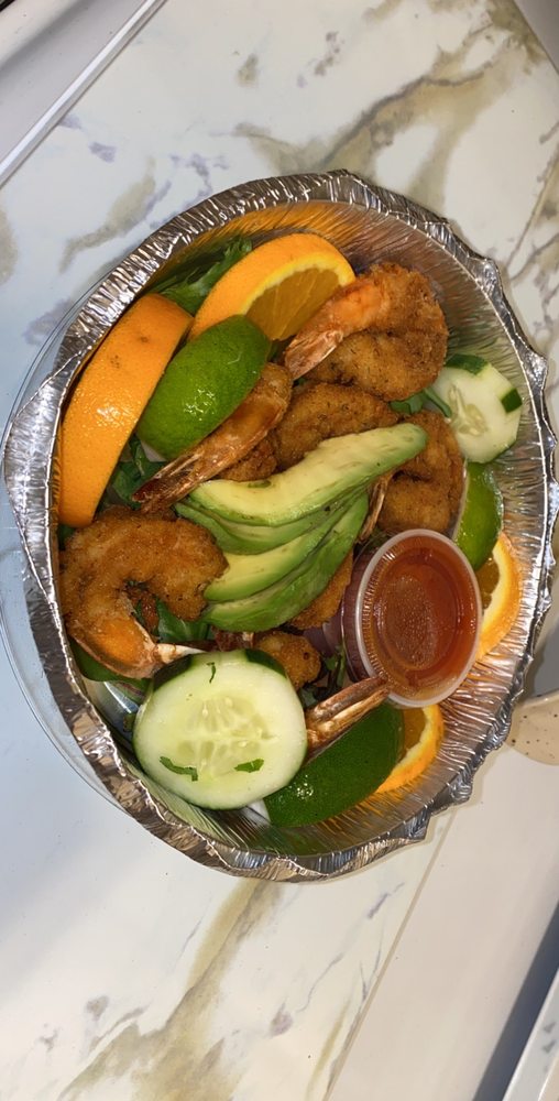 6 shrimp sauteed with onions, jalapenos and tomatoes. Served with rice, refried beans, corn tortilla or salad and french fries.